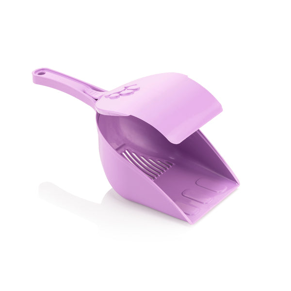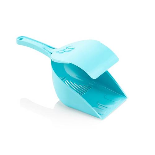 - It has a large scoop that can easily pick up clumps of litter, and a cover that prevents the litter from falling off the scoop or spreading dust and germs.