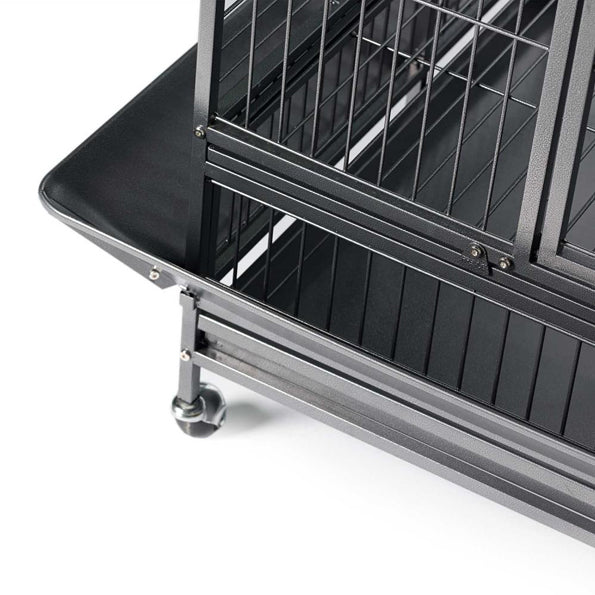 - Cage stand base features easy-rolling casters