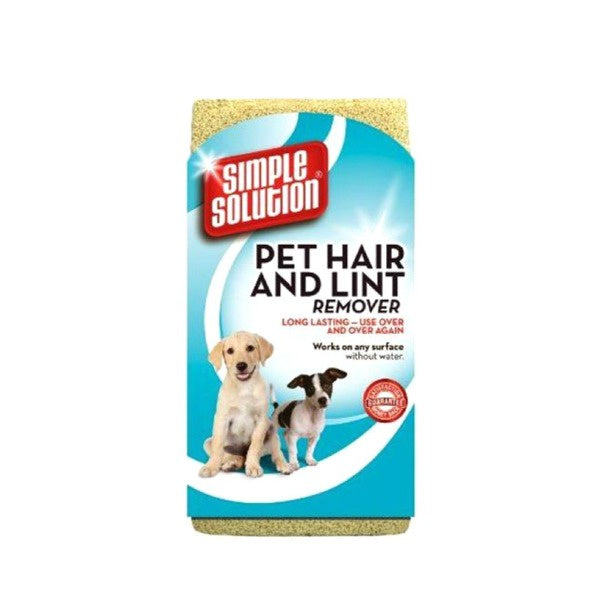 Simple Solution Pet Hair and Lint Remover Sponge Simple Solution pet hair & lint remover is an easy way to remove pet hair from any surface. The special rubber traps and removes pet hair, dander, lint and dust, without wetting. Can be used on any surface without water including - clothing, upholstery, electronics, carpets, rugs, stone, brick wallpaper and many more Long lasting, remove and dispose of pet hair and re-use over an over again.